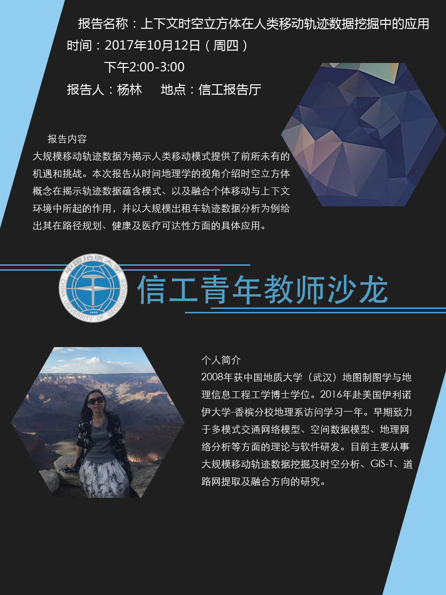 大规模移动轨迹数据为揭示人类移动模式提供了前所未有的机遇和挑战。本次报告从时间地理学的视角介绍时空立方体概念在揭示轨迹数据蕴含模式、以及融合个体移动与上下文环境中所起的作用,并以大规模出租车轨迹数据分析为例给出其在路径规划、健康及医疗可达性方面的具体应用。