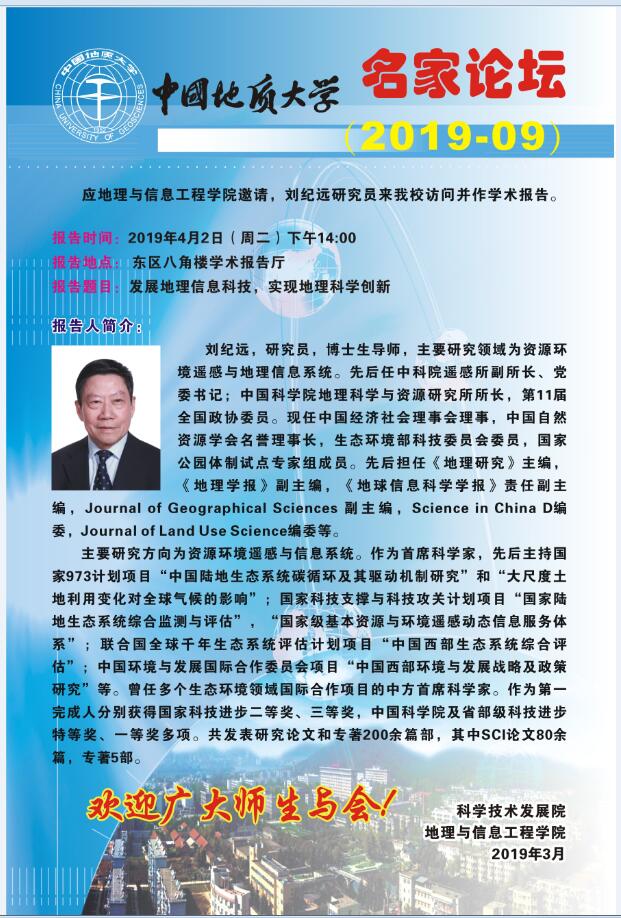 名家论坛(2019-09): 发展地理信息科技,实现地理科学创新