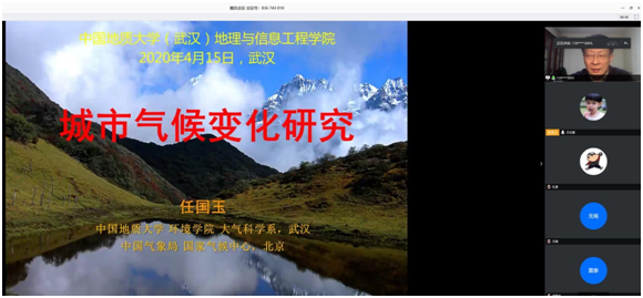 2020年4月15日下午,国家气候中心首席专家任国玉研究员应邀通过我校在线授课平台进行了“城市气候变化研究”主题讲座,本次讲座由王伦澈副院长主持,120余名师生在线聆听了讲座。