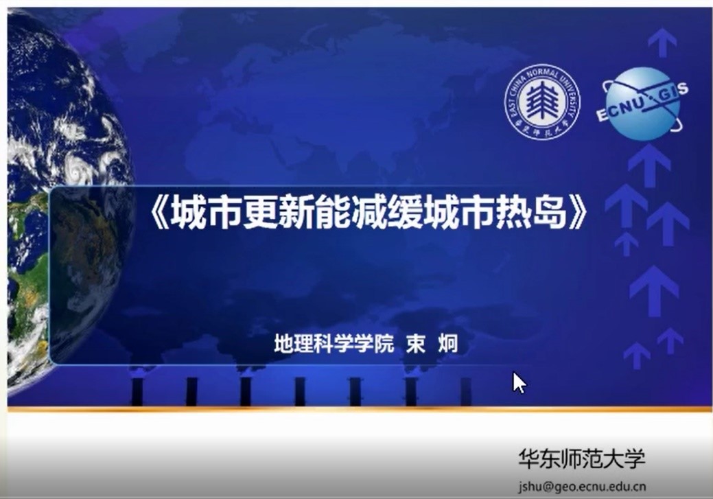 2020年5月20日下午,华东师范大学束炯教授应邀通过我校在线授课平台进行了“中国城市更新能减缓城市热岛”主题讲座,本次讲座由王伦澈副院长主持,近100名师生在线聆听了讲座。