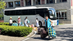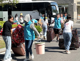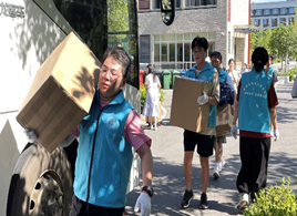 骄阳下,志愿者们身着蓝马甲,穿梭于校园之中。接驳组协助同学们在大巴和摆渡车之间装卸行李,并有序运送至寝室楼栋。楼栋组主动承担行李上楼工作,帮助同学们搬运较重的大件行李。从组团入口到寝室门口,大家形成了一条秩序井然的搬运“流水线”,极大提高了搬迁效率。志愿者们洒下的汗水闪烁着金色的光芒,忙碌的身影也成为了一道靓丽的风景线。